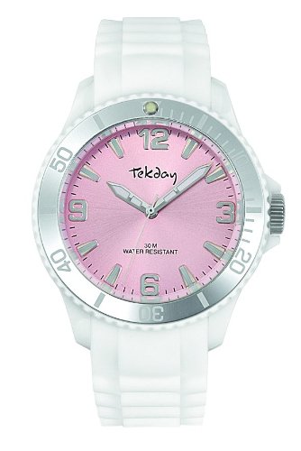 Tekday - 652978 - Montre Mixte - Quartz Analogique - Cadran Rose - Bracelet Silicone Blanc Reviews